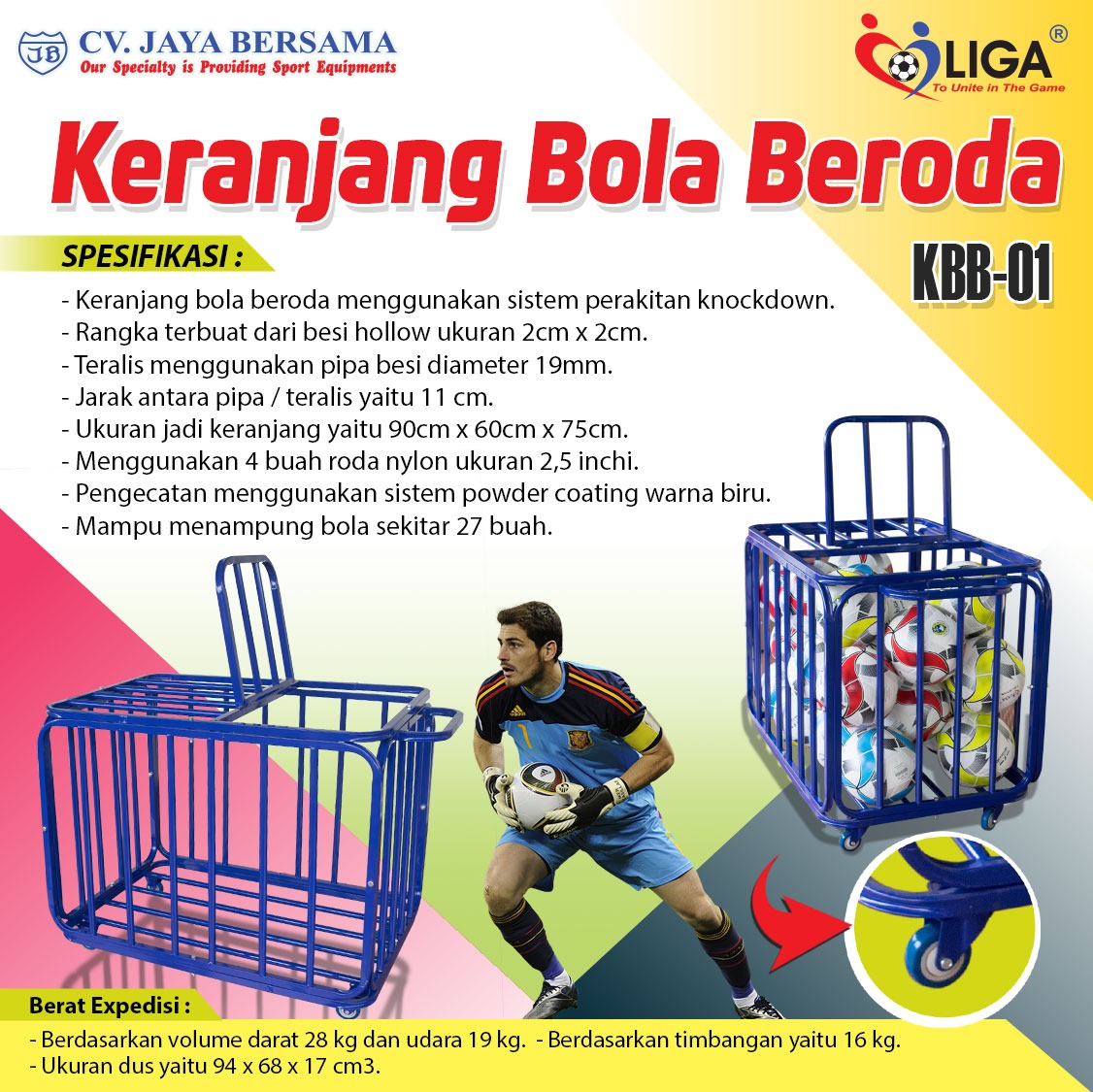Spesifikasi Keranjang Bola Beroda KBB-01 merek LIGA sebagai berikut :