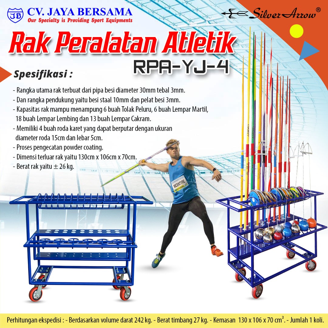 Spesifikasi Rak Peralatan Atletik RPA-YJ-4 (Athletic Equipment Rack) merek Silver Arrow sebagai berikut :
