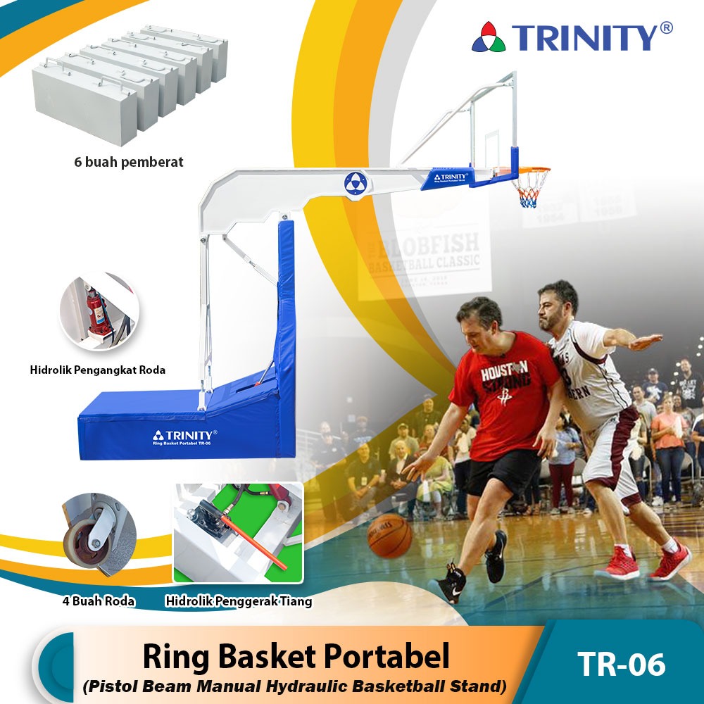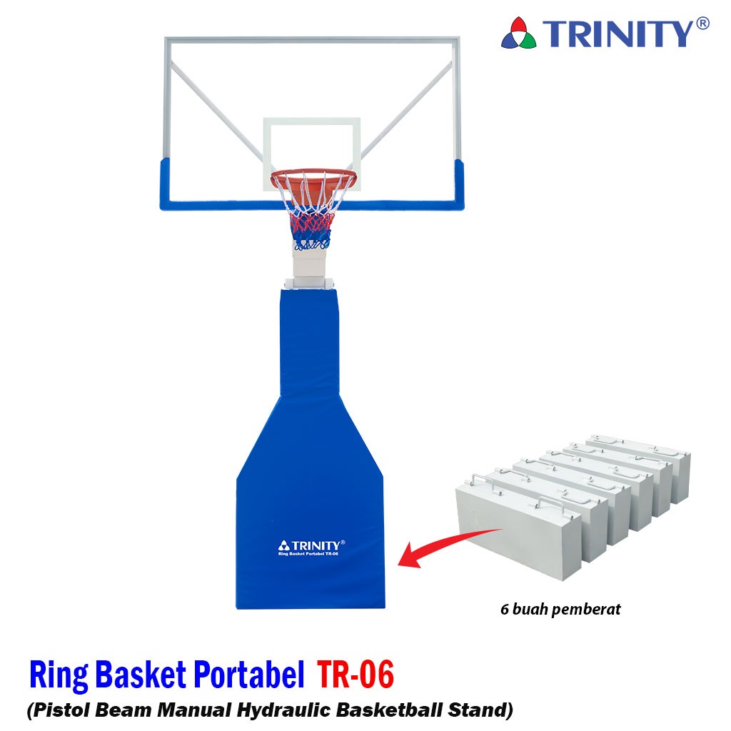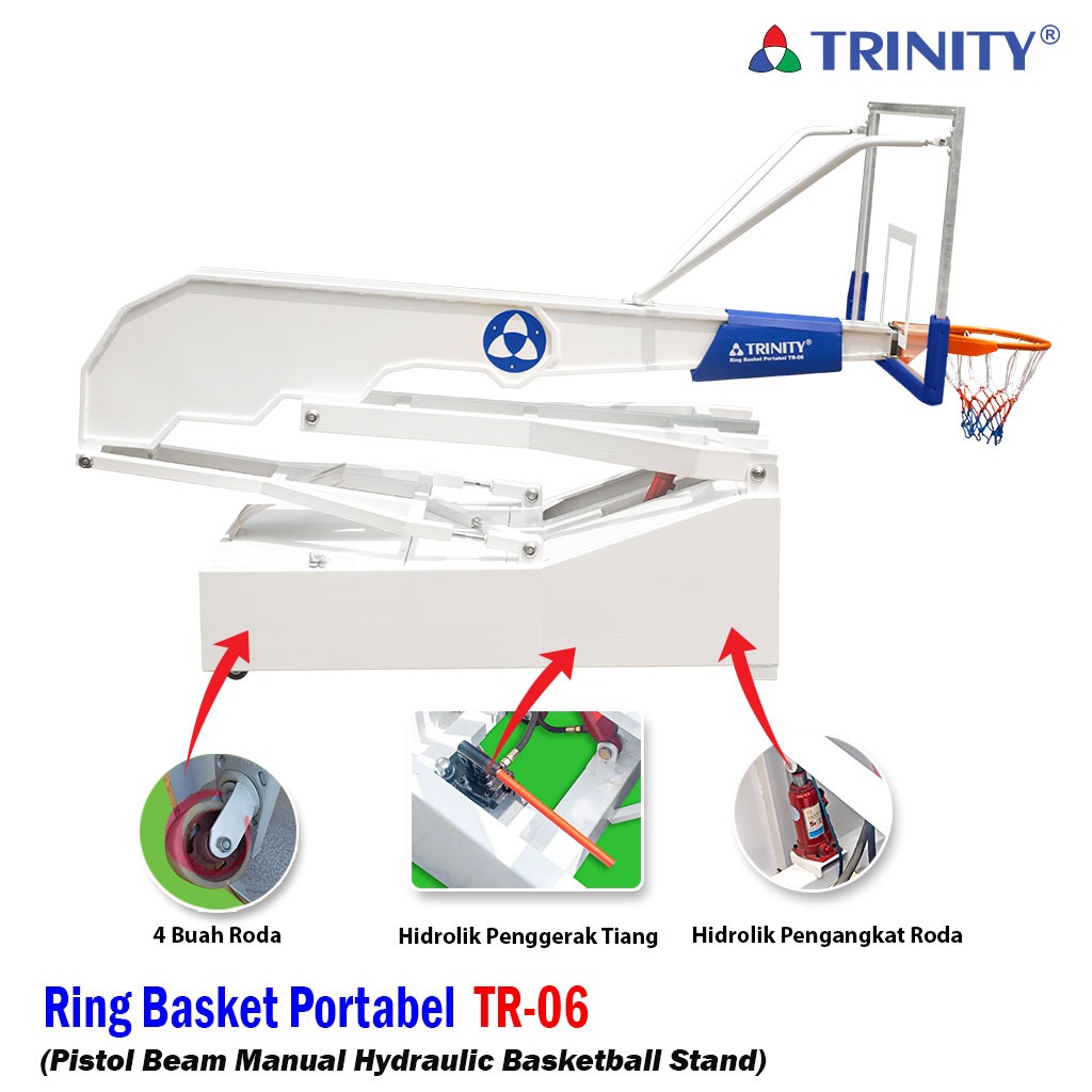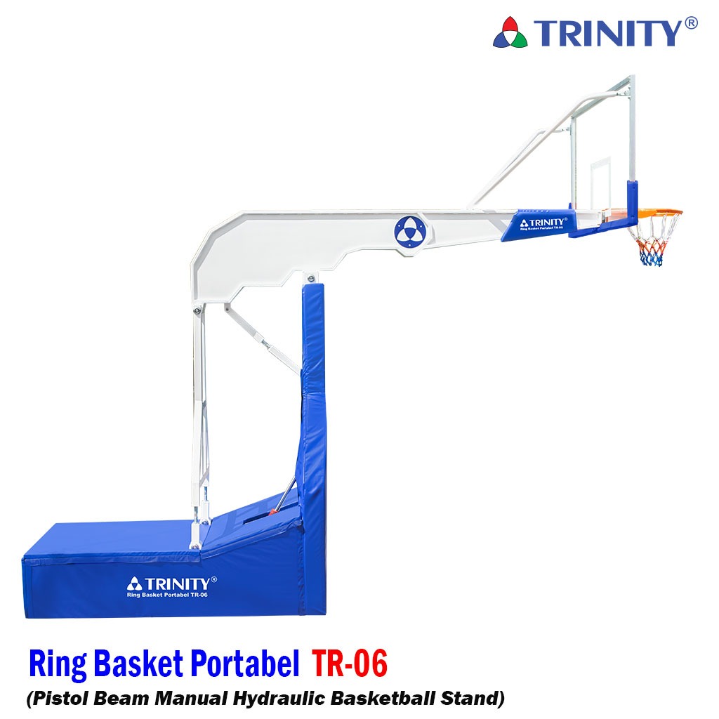 Spesifikasi Ring Basket Portabel TR-06 (Pistol Beam Manual Hydraulic Basketball Stand) merek Trinity sebagai berikut :