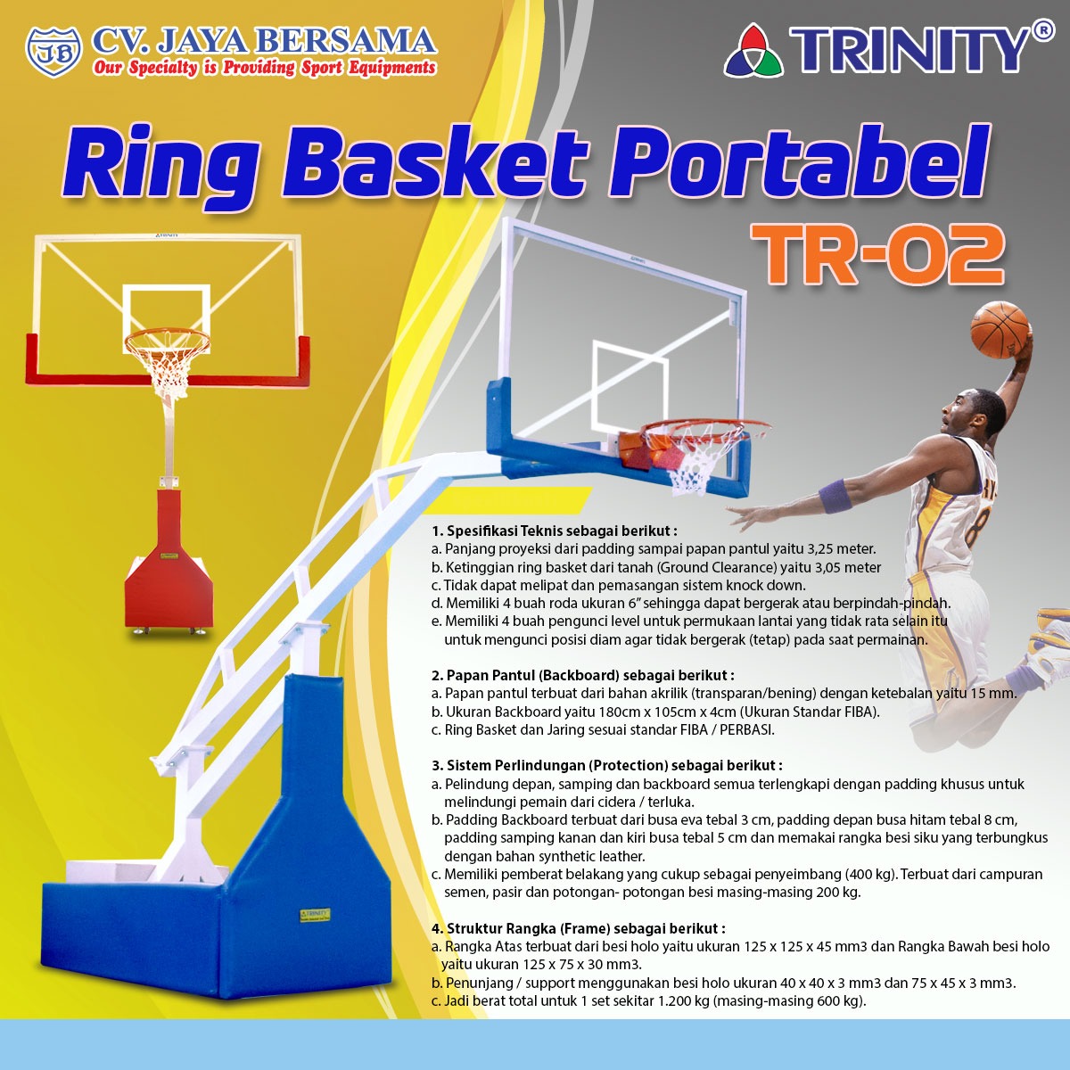 Spesifikasi Ring Basket Portabel TR-02 merek Trinity sebagai berikut :