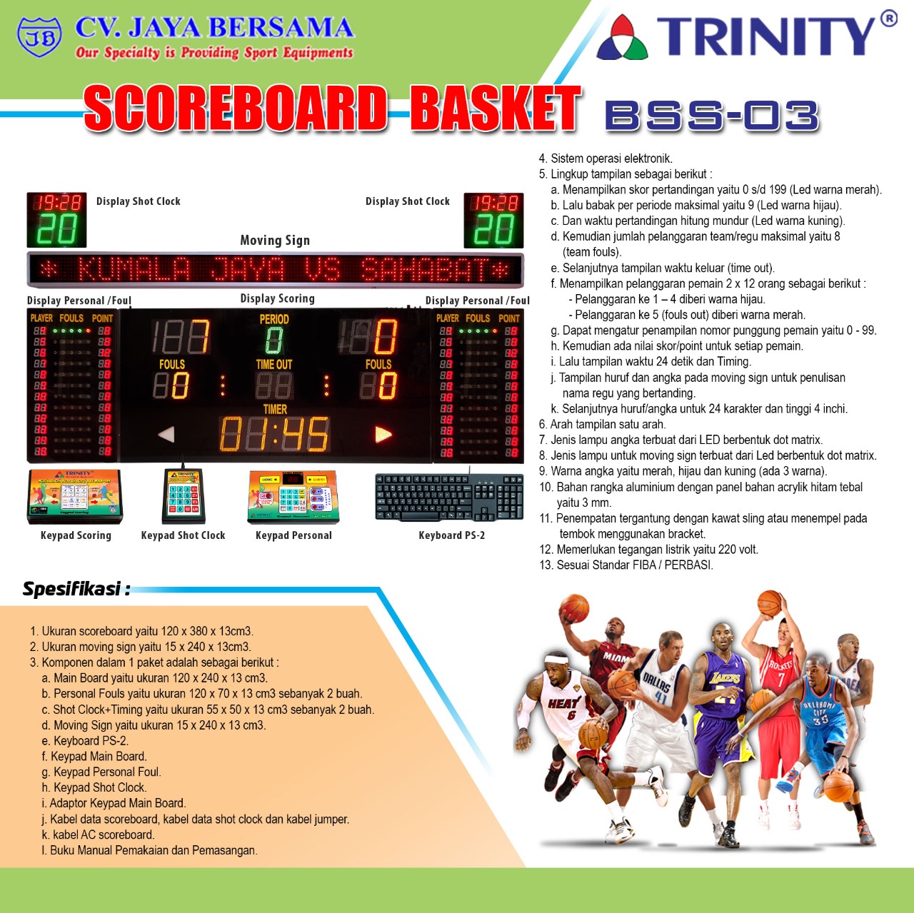 Spesifikasi Scoreboard Bola Basket BSS-03 merek Trinity sebagai berikut :